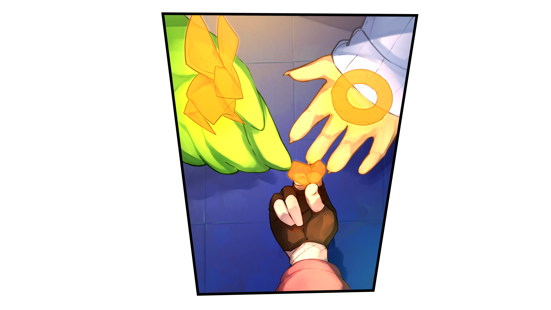 右手からかわいらしい折り紙のドーナッツが生まれた